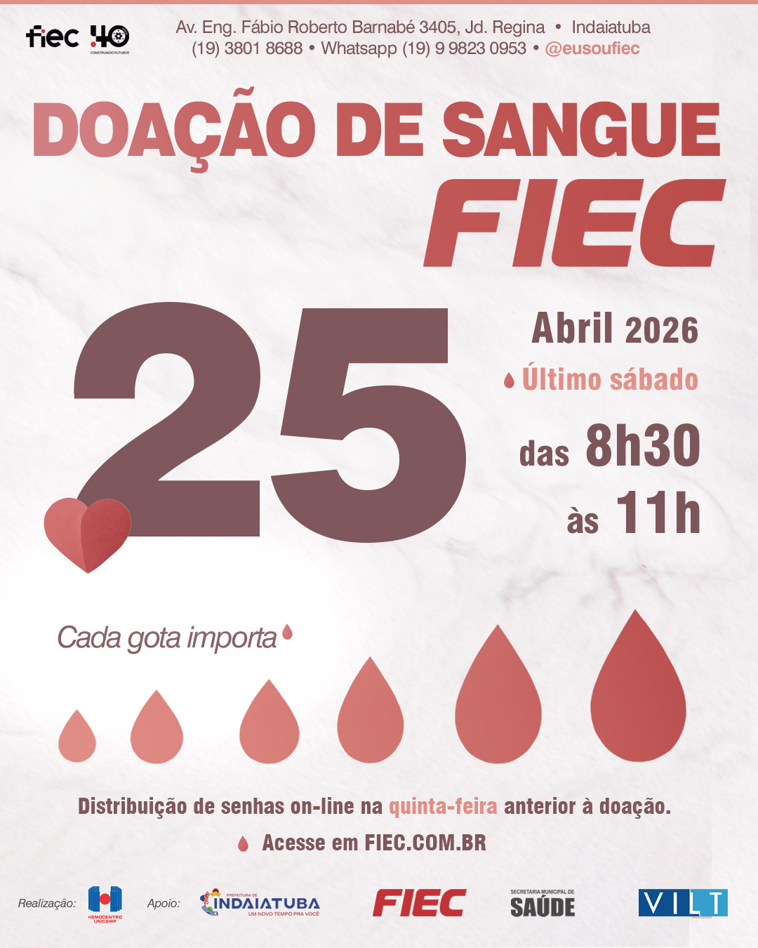Av. Engenheiro Fábio Roberto Barnabé, 3405 - Jardim Regina - CEP: 13349-003 - Fone: (19) 3801-8688 - Indaiatuba - SP