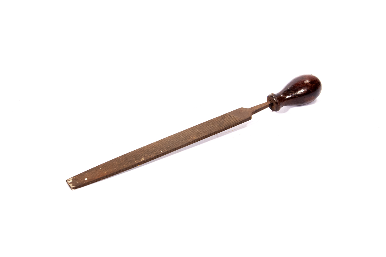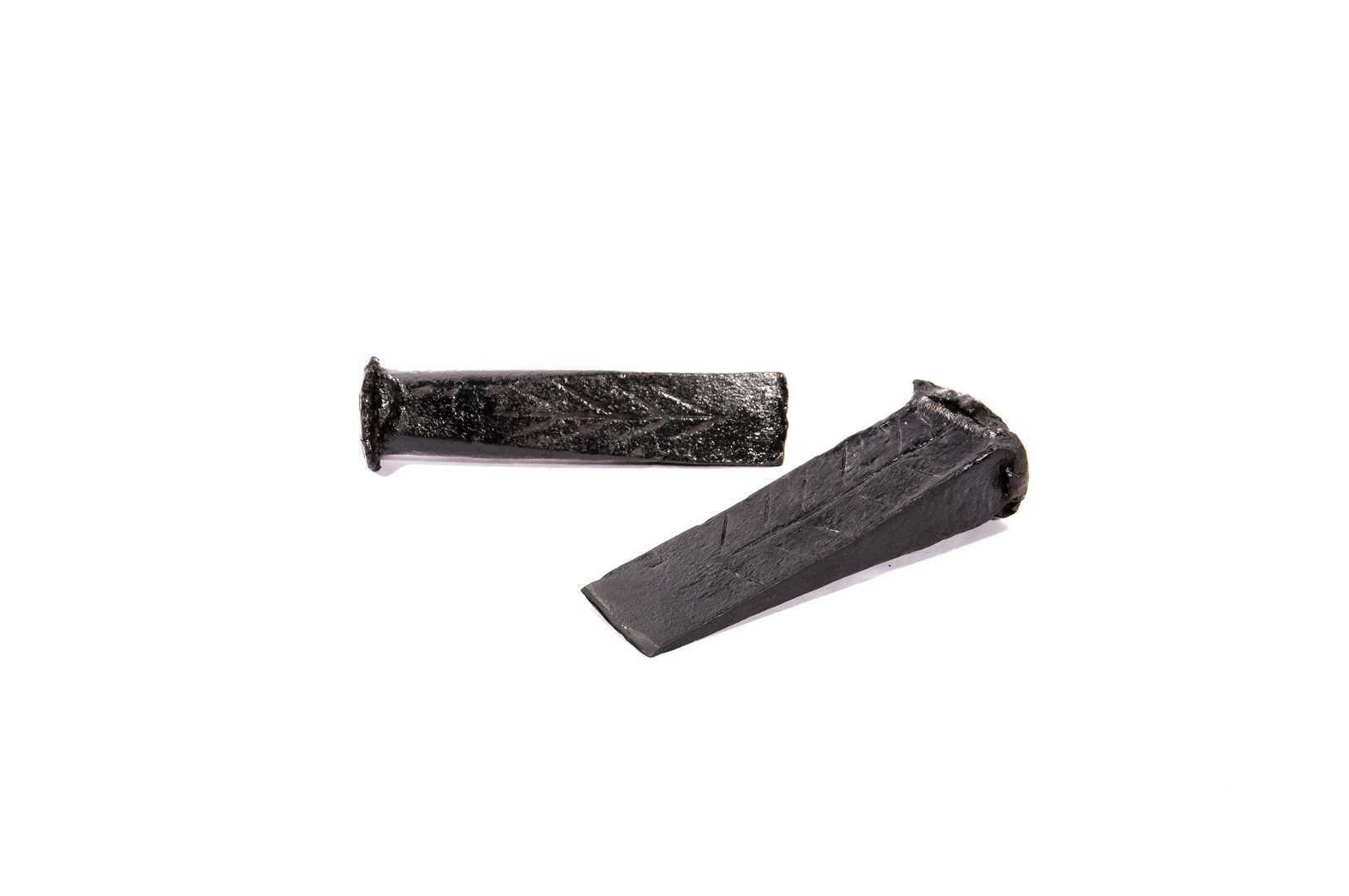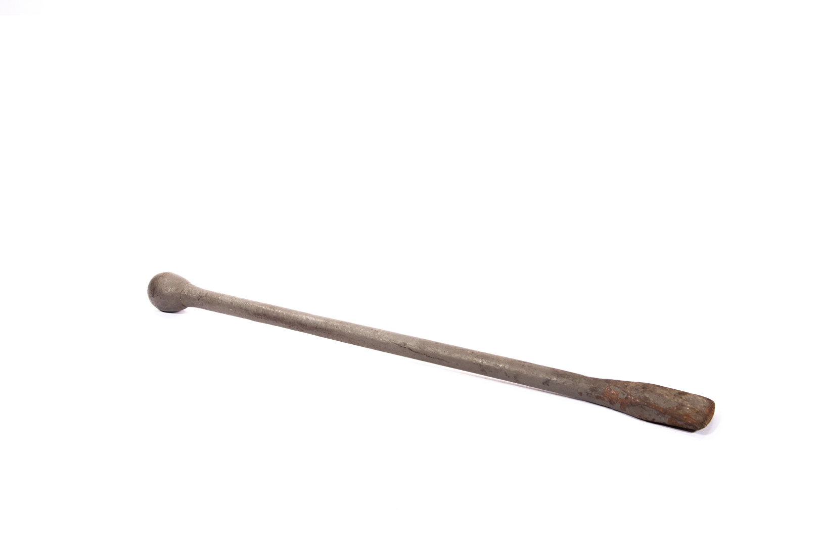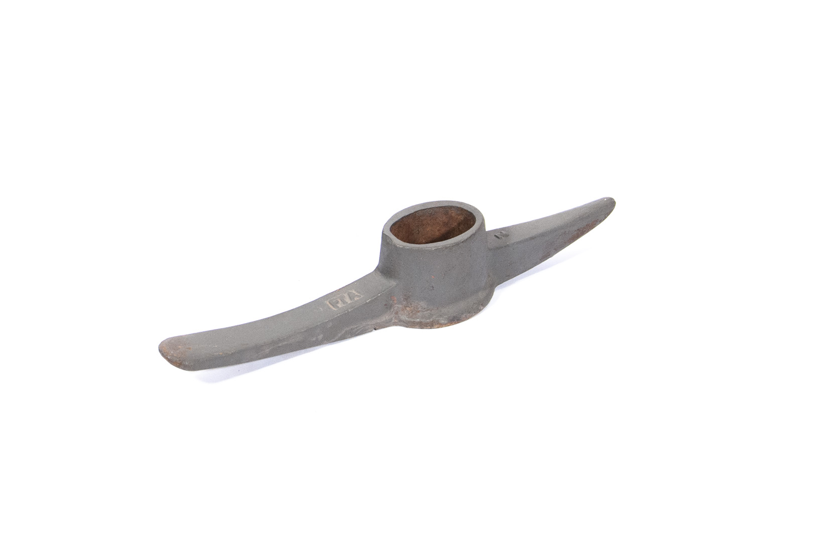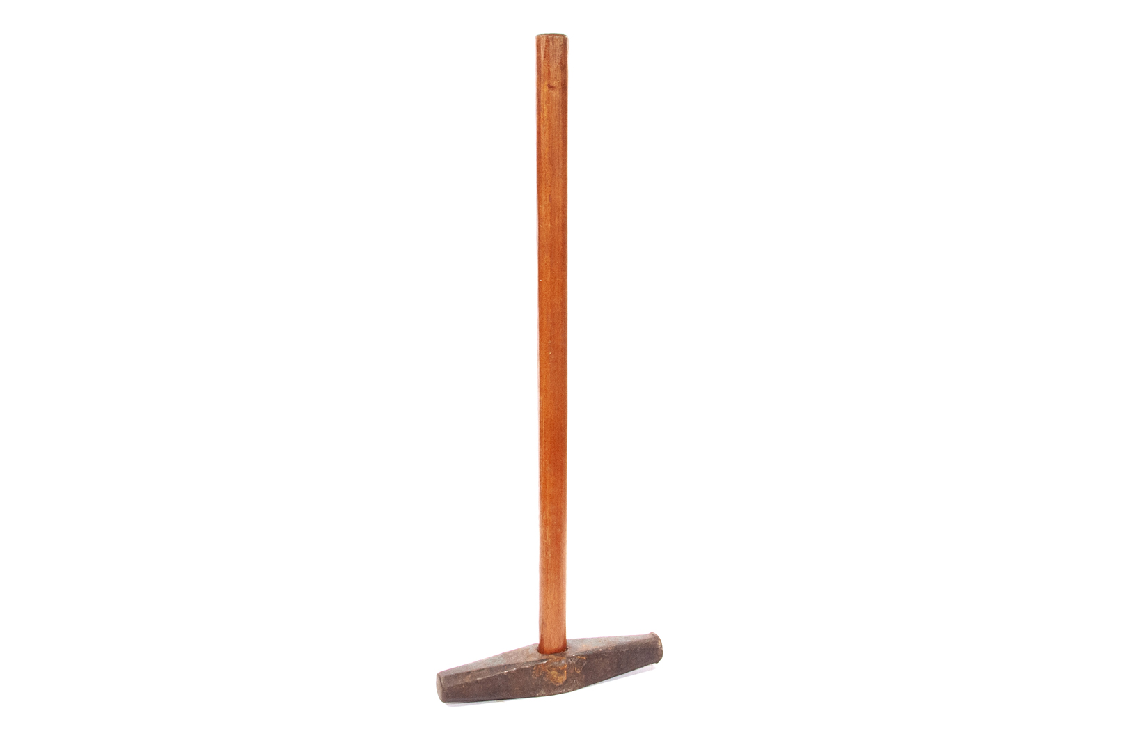 dormente, com um bico largo, adaptado para socar as pedras. Ferramenta