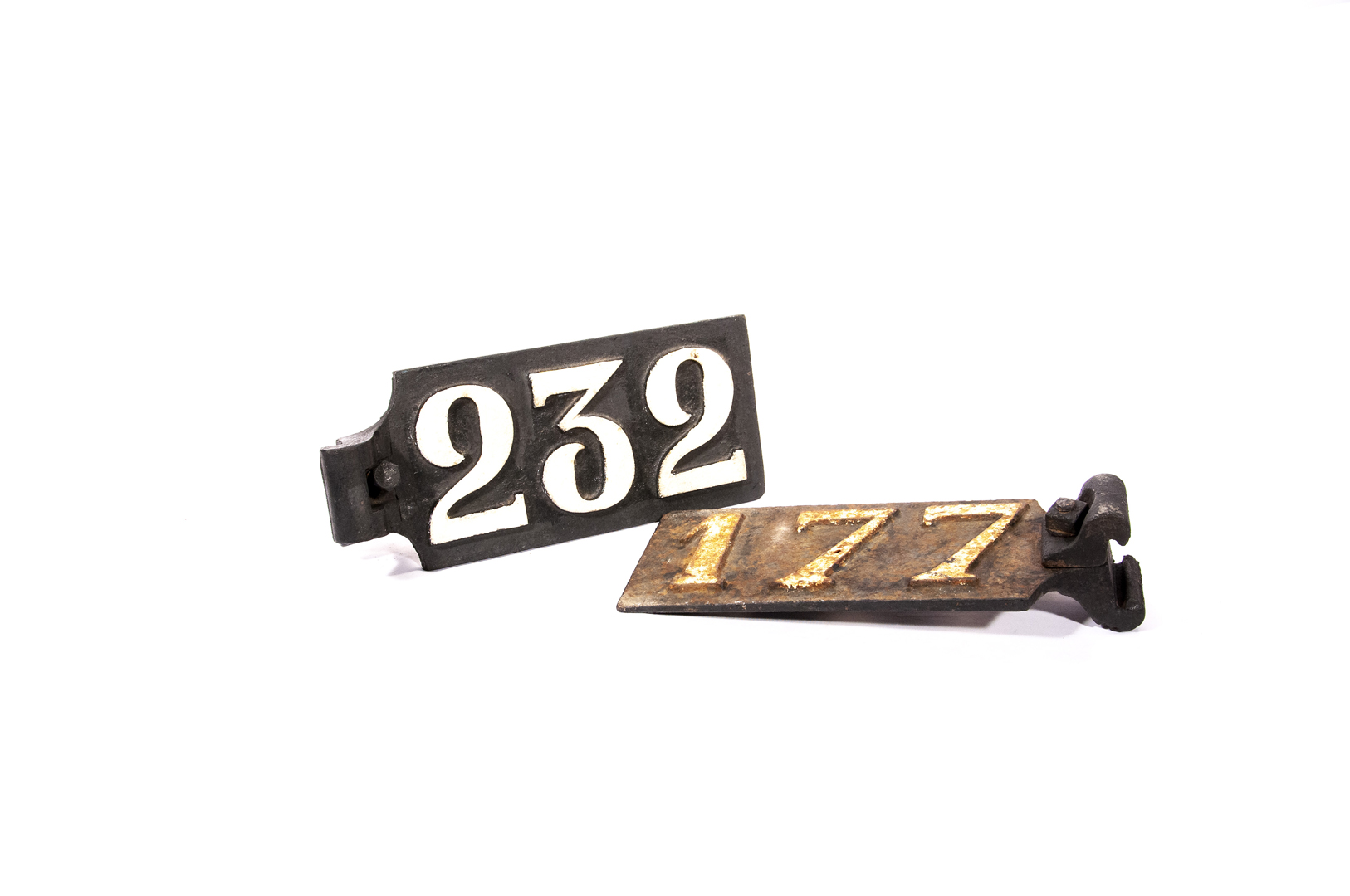 informar a quilometragem do ramal ferroviário, afixadas em pedaços de trilhos a